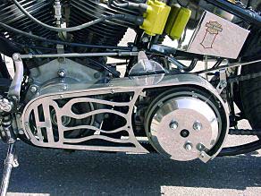 ワンオフのコックドベルトカバーは アルミ製。 |